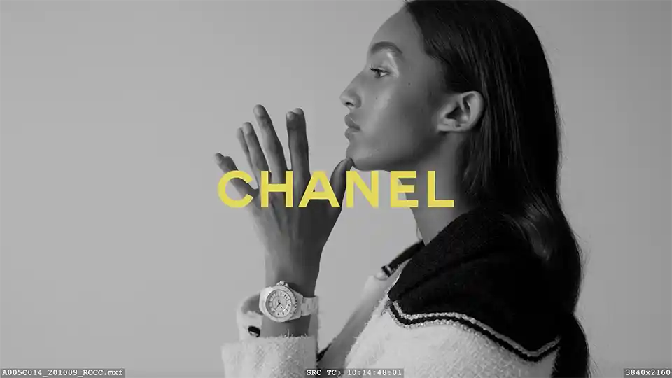 Montage d'une vidéo pour le neuvième chapitre d'une campagne publicitaire en noir et blanc, pour le groupe Chanel sur le thème du temps pour leur nouvelle montre.